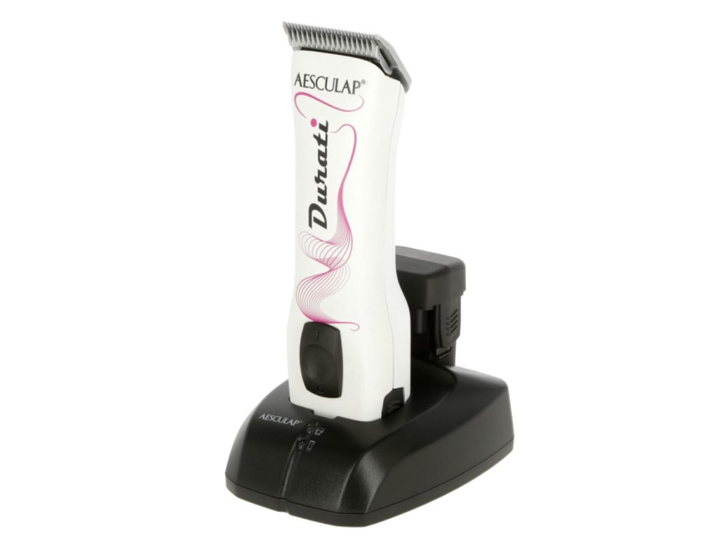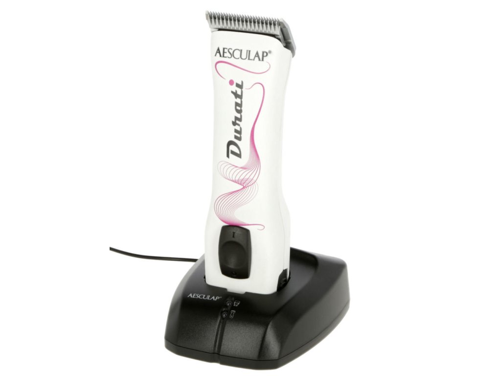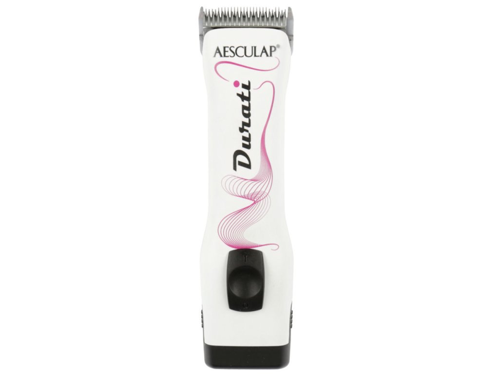 Výkonný, tichý, spolehlivý a odolný stříhací strojek Aesculap Durati ProWhite na psy a skot, vybaven čepelovým systémem SnapOn – nacvaknutí.